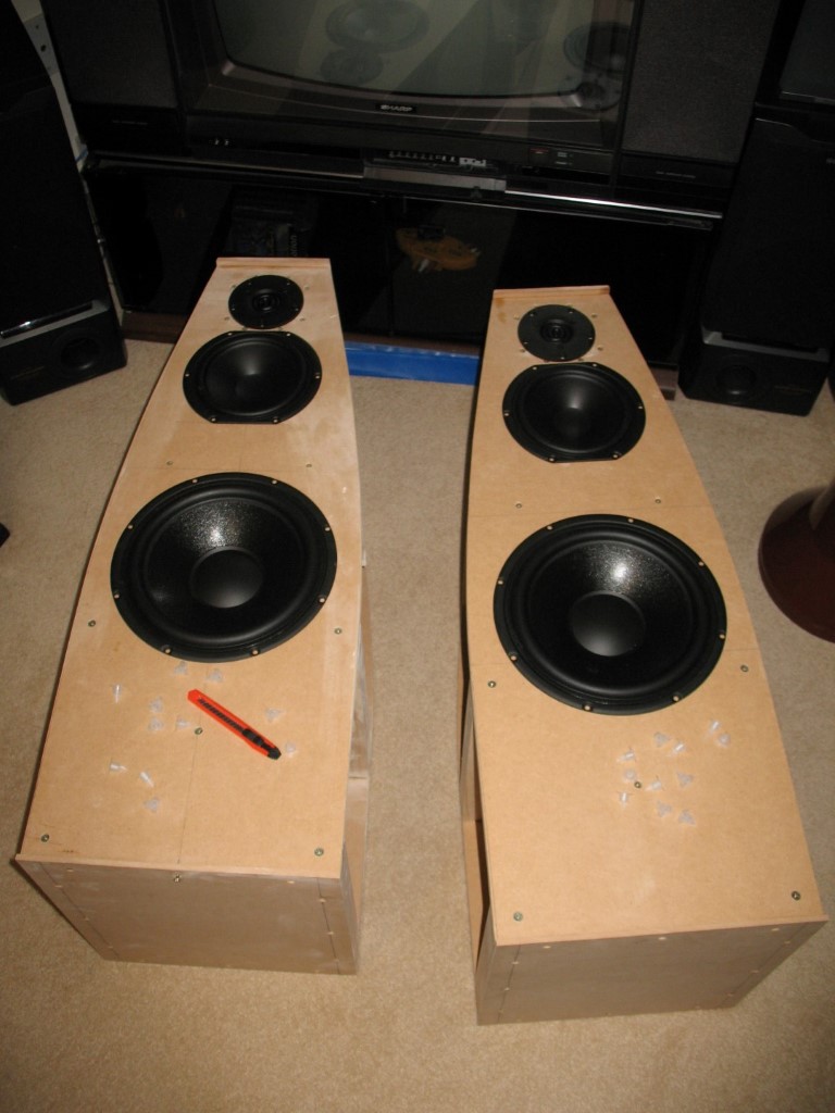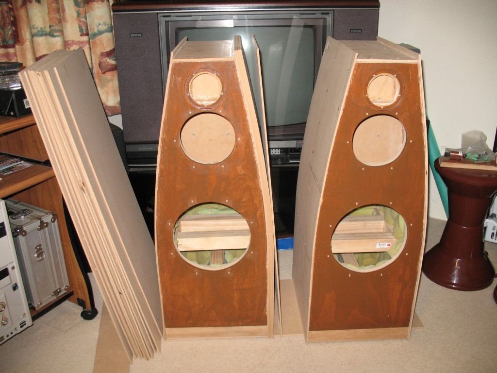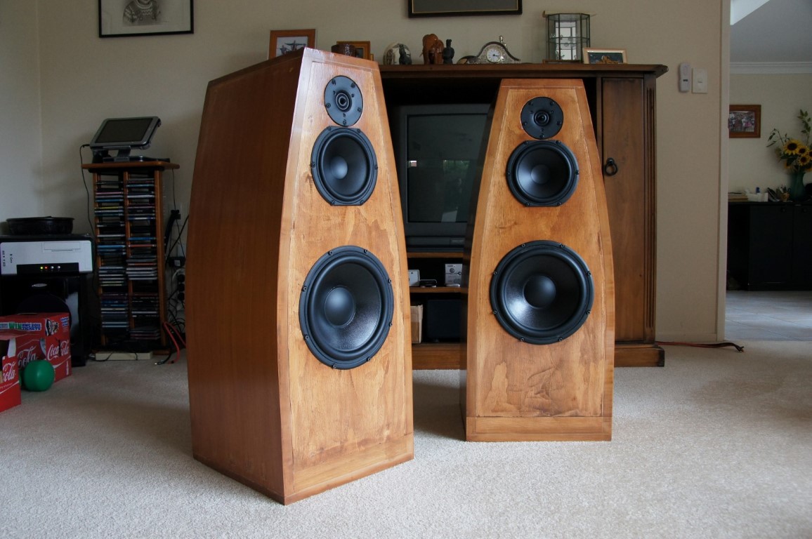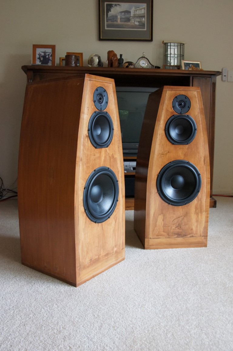 I wanted to design and build a pair of high quality floor-standing hi-fi loudspeakers, in a more unusual shape than the traditional oblong box. I based my design broadly on Paul Carmody's Tarkus speakers, which he voiced specifically for rock music.