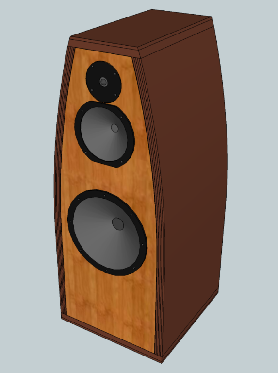 From the frequency response and impedance curve for the drivers, I used enclosure modelling software to calculate the internal dimensions, volumes, baffle areas and positions, including diffraction and boundary simulation and padding required for an eventual flat frequency response. I also modelled the crossovers to provide a flat response with a slight bass boost.Then I used Google SketchUp to model how I wanted the speakers to look, and the internal design and dimensions needed to achieve the correct volumes and response for the various driver enclosures.
