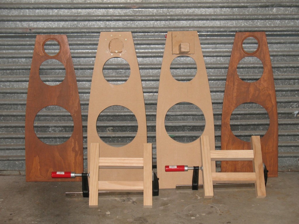 Using a jigsaw I cut out the front, back and internal panels from 18mm MDF. I cut the holes for the drivers in the front panels, using a router to recess and chamfer the edges of the driver holes.